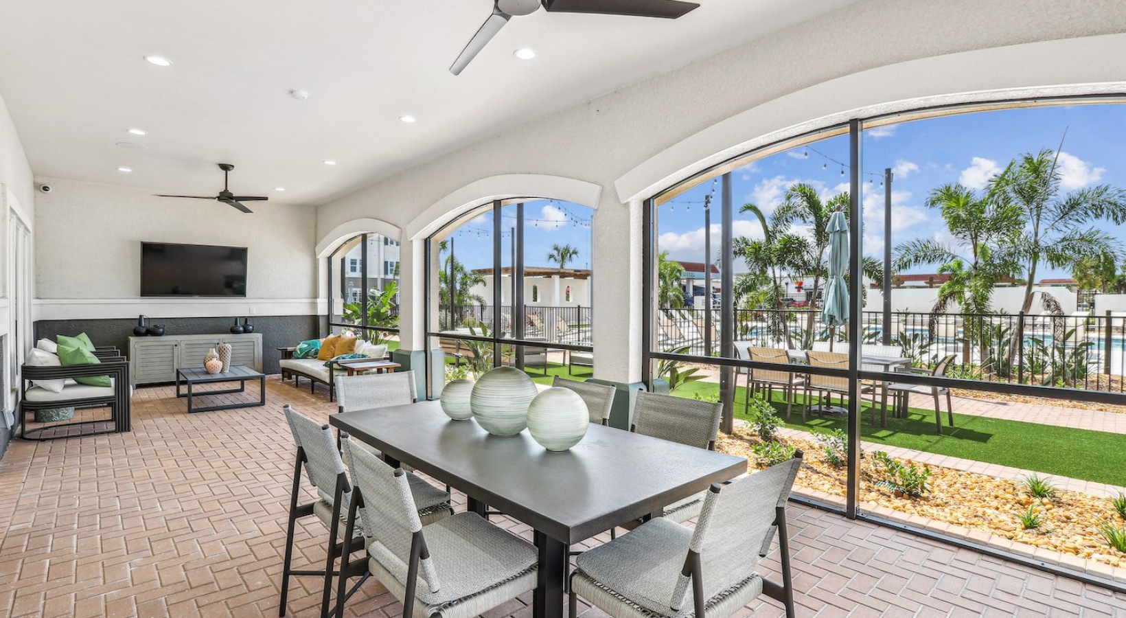 Experience the best of outdoor apartment living in the Venice, FL area at Revello, where thoughtfully designed community spaces invite relaxation and connection. Enjoy multiple seating and gathering areas, complete with grill stations and a screened-in veranda, ideal for socializing or unwinding in the Florida sunshine.