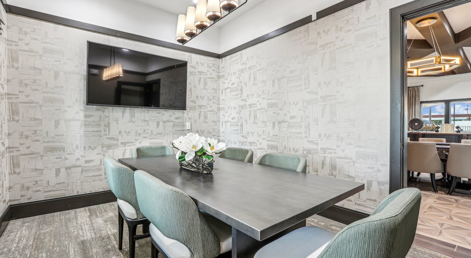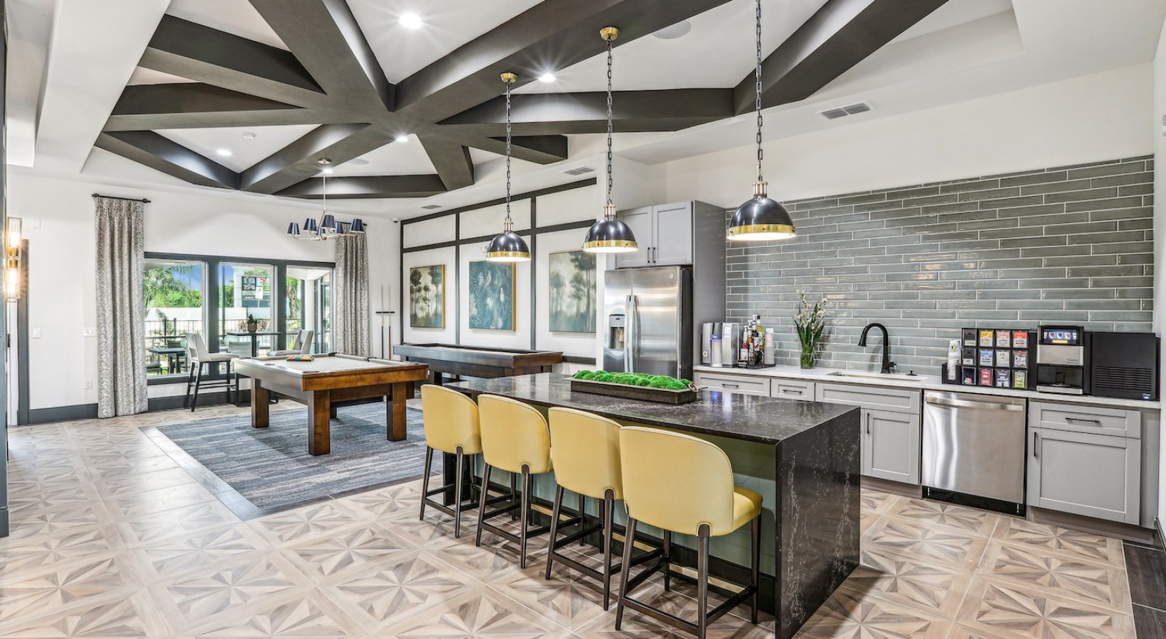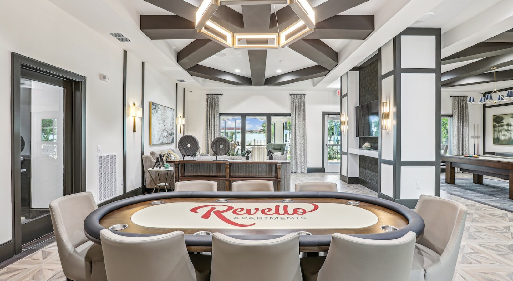 Inside, the expansive clubhouse offers a variety of modern amenities, including games such as billiards and poker, workstations with printing, and a state-of-the-art fitness center — perfect for both productivity and play. For pet lovers, Revello also features two spacious dog parks and a pet spa, giving your four-legged companions plenty of room to explore and enjoy.